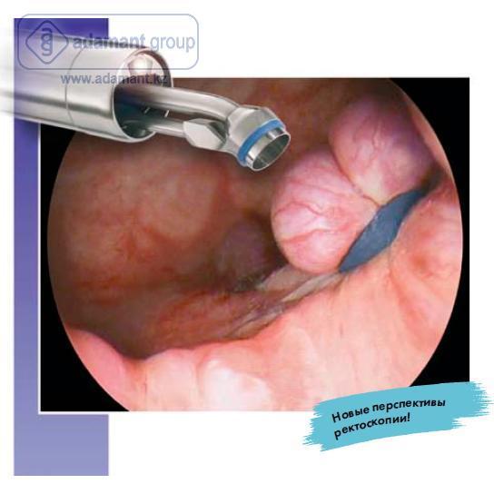 ректоскоп с интегрированной оптикой, овальным рабочим каналом, оснащенный прозрачным дистальным колпачком